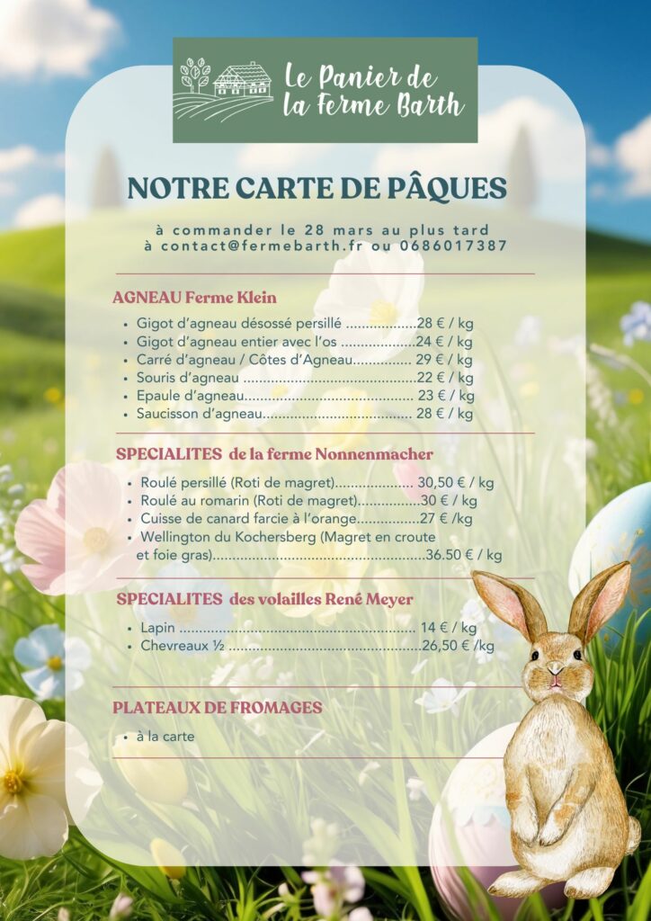 13 mars 202613 mars 2026POUR PAQUES Voici notre carte pour Päques, les commandes sont à passer le 28 mars au plus tard